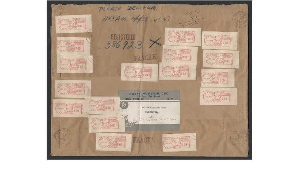 Следующей обладательницей этого редчайшего камня стала Эвелин Уолш Маклин из Вашингтона (фото в галерее). После кончины владелицы бриллиант был продан в счёт платы долгов и попал в руки коллекционера Гарри Уинстона. Гарри Уинстон поступил весьма оригинально, передав в 1958 году бриллиант Хоуп народу Америки. Сделал он это, отправив уникальный камень обычным почтовым отправлением (фото конверта – в галерее)! Теперь уникальный голубой бриллиант хранится в музее Смитсоновского института, являясь центральным камнем платинового колье от Картье, где его окружают 16 больших алмазов, подвешенных на цепи, усыпанной 45 бриллиантами (изображение колье с сайта смитсоновского института – в галерее).
