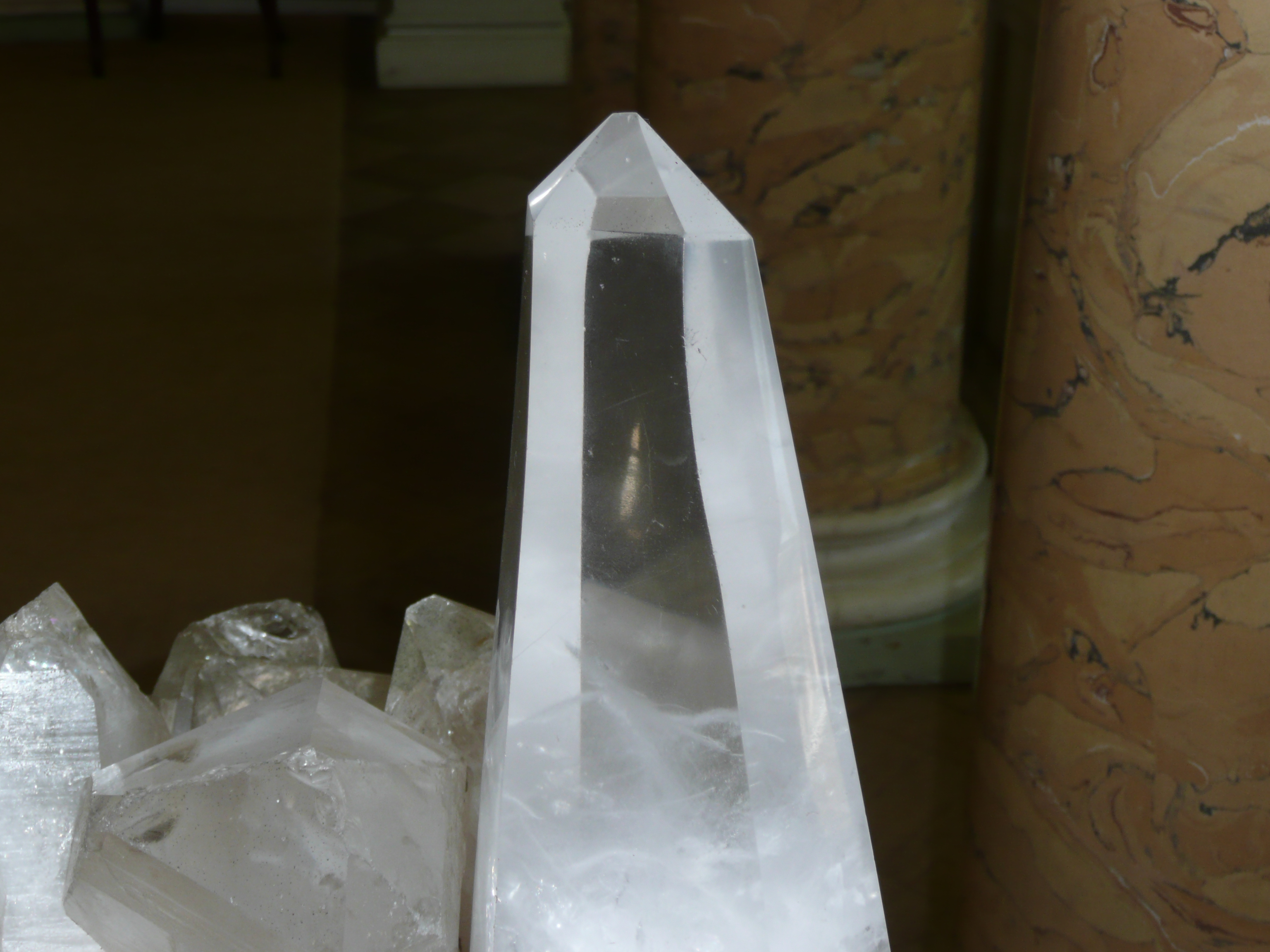 Горный хрусталь – романтическое название бесцветной разновидности кварца! Весьма распространённый минерал, встречается в виде вот таких, как на фото, призматических кристаллов. Это природные кристаллы, таким минерал вырос в недрах Земли, такова его кристаллическая решётка, формирующая внешний облик.