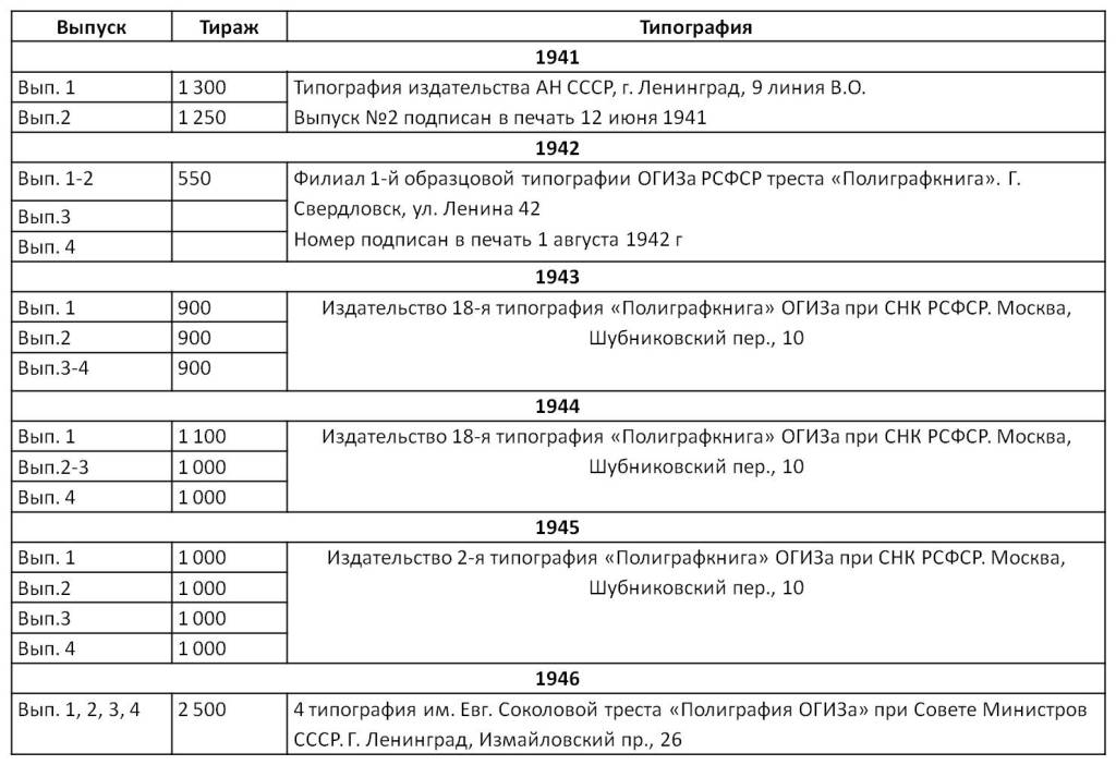 В период 1928-1936 гг выходило по 2 выпуска журанал в год, за 1937-1940 было издано по 4 номера. Последний предвоенный номер (выпуск 2 за 1941 год) был подписан в печать за 10 дней до начала войны, 12 июня 1941 года. В 1941 и 1942 гг удалось издать по 2 номера в год, в 1943 вышло 3 номера, а с 1944 возобновилось издание 4 журналов в год. В 1941 «Записки» печатались, как и в настоящее время, на 9 линии Васильевского острова в Ленинграде (типография АН СССР). Более чем на год прекратилась издательская деятельность и была возобновлена во второй половине 1942 года, года 1 августа был подписан в печать сдвоенный номер (выпуски 1 и 2). Первый выпуск военного времени был отпечатан в Свердловске. В период 1943-1945 гг «Записки» издавались московскими типографиями, а с 1946 года журнал снова стал издаваться в Ленинграде.