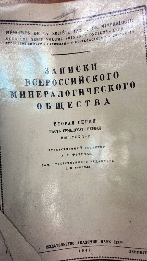 Российское минералогическое общество (ранее Императорское минералогическое общество, Всесоюзное минералогическое общество) основано в 1817 году в Петербурге и является одним из старейших научных обществ нашей страны. Первое периодическое печатное издание под заглавием «Труды Минералогического Общества в Санкт-Петербурге» было выпущено в 1830 году, и за период 1830-1864 гг. было издано 16 томов. С 1865 года, изменив название на «Записки Императорского Минералогического Общества», журнал издавался до 1918 года, затем, после четырехлетнего перерыва, возобновилась деятельность по выпуску «Записок Всесоюзного Минералогического Общества». Именно с таким названием встретило войну научное издание старейшего в Мире минералогического общества.