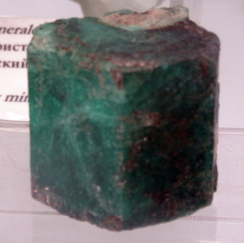 Изумруд – это ярко-зелёная разновидность минерала берилл, который бывает и бесцветным, и зелёно-голубым морского цвета (аквамарин), и розовым (воробьевит). В природе изумруды встречаются в виде шестиугольных призм (см.фото). Издревле имел название смарагд, высоко ценился в античности (на латыни изумруда — Smaragdus), и добывался на протяжении трёх тысячелетий (!!!) в копях Клеопатры. На территории Российской империи изумруды стали известны в 19 веке, они сразу завоевали любовь императорской фамилии. Так, широкую известность получили семь изумрудов из парюры императрицы Марии Александровны, в 20 веке перешедшей её наследнице Марии Карагеоргиевич (её портрет кисти Павле Йовановича представлен в галерее).
