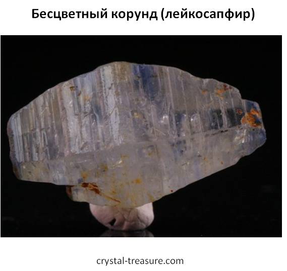 Корунд имеет простой состав, это оксид алюминия. Окраску ему придают химические примеси: так, красную рубиновую окраску придаёт хром, синюю сапфировую – железо, редкий оранжево-розовый сапфир падпарадша получается, если в составе одновременно и хром, и кислород. Отсутствие окрашивающих примесей скорее редкость для корундов, но если уж такое случается, рождается редкий бесцветный лейкосапфир, зачастую сравниваемый с бриллиантом.