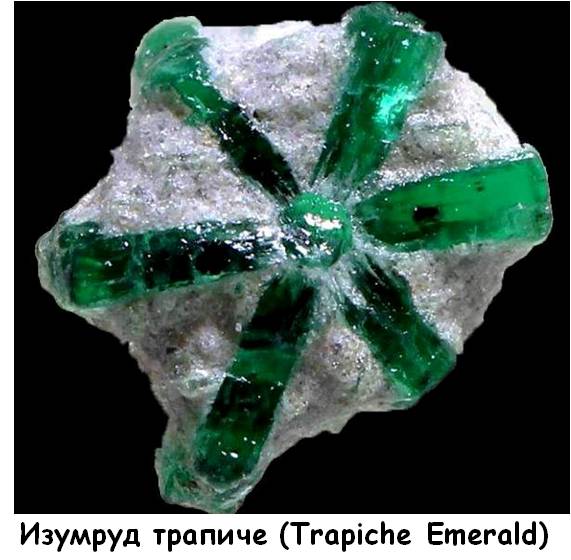 Природная форма кристаллов изумруда – шестиугольная призма (см.галерею). Редко природные изумруды бывают совершенно чистыми, для этого минерала весьма характерны включения других минералов и трещины. Необычны изумруды трапиче (Trapiche Emerald), известные в Колумбии и похожие на шестилучевые звёзды (см.галерею). Трапиче представляют собой кристаллы, ребра которых избирательно поглощали посторонние частицы в процессе роста.