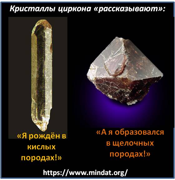 Яркий пример отражённых в форме кристалла условиях роста – циркон. Длинные, словно скипетры, кристаллы циркона – это так называемые кислые растворы. А вот кристаллы-пирамидки – это уже щелочные. Геолог лишь взглянёт на внешнюю форму, и тут же расскажет, в каких магмах родился циркон. Чтобы получить такой дар «ясновидения» и «чтения по камням» требуется освоить законы кристаллохимии и генетической минералогии.