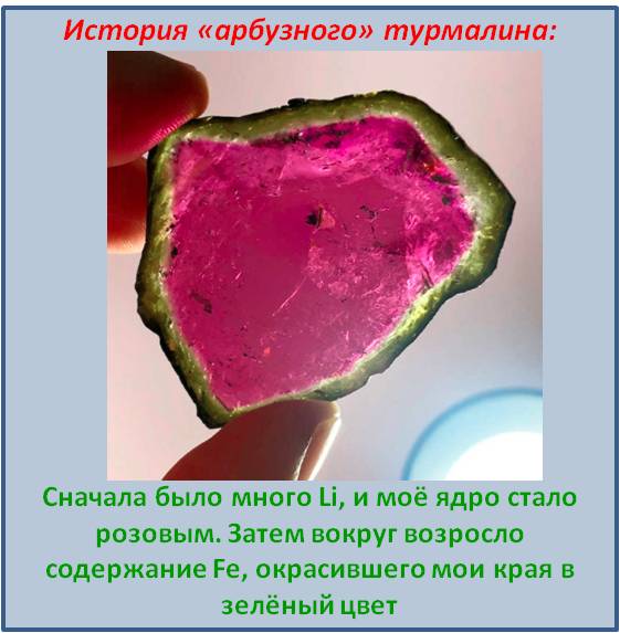Розовый турмалин говорит о том, что его питали растворы, насыщенные литием.
