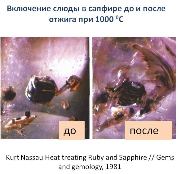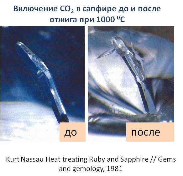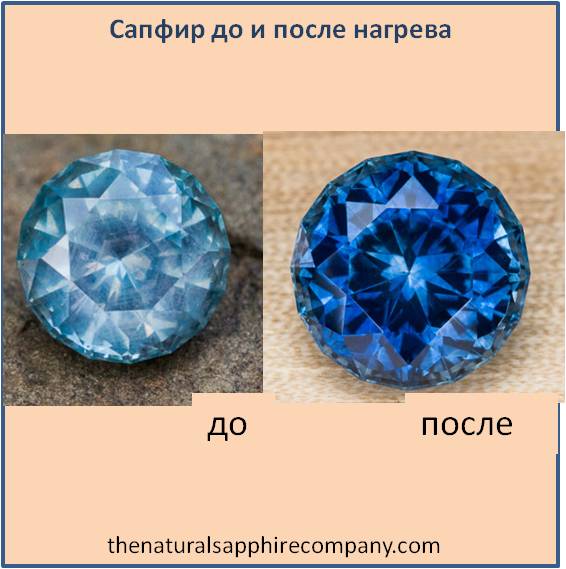 В гретых сапфирах пропадает рутиловый шёлк, некоторые включения трескаются, и около них можно наблюдать трещины (фото в галерее). Поэтому специалист-геммолог с помощью микроскопа или даже лупы без труда может диагностировать такой минерал.
