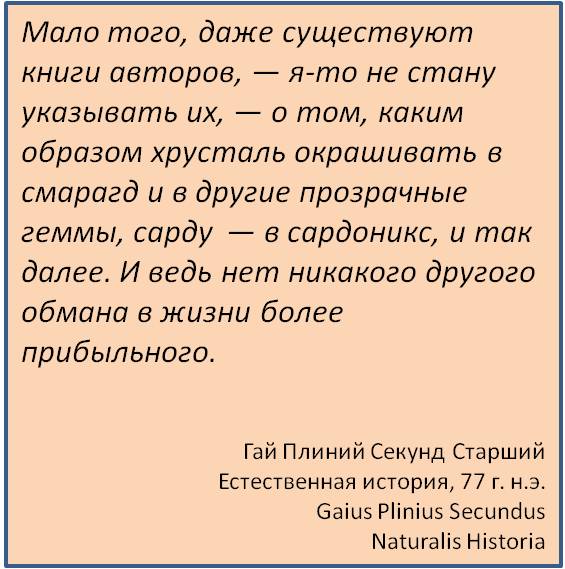 Современные технологии позволяют без труда выращивать совершенно чистые минералы. Но человеку хочется иметь натуральный, природный камень, пусть даже чуточку «улучшенный». Поэтому облагороженные самоцветы – не редкость и в наше время. В заключении – двухтысячелетняя цитата из Плиния Старшего, во многом остающаяся актуальной и сейчас.