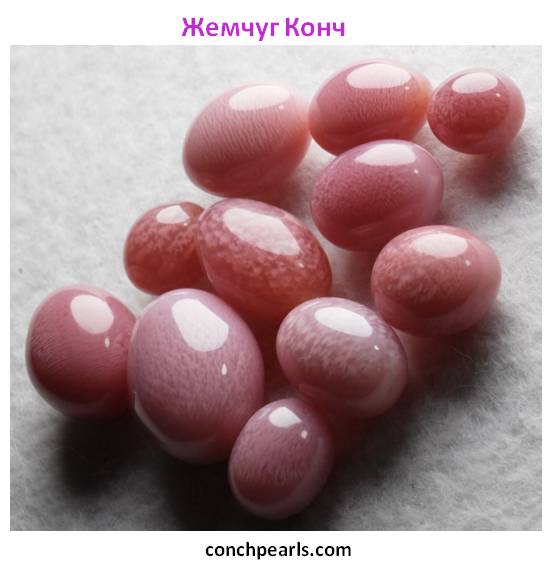 Удивительно яркий и сочный – розовый жемчуг конч! Растёт такой жемчуг в Карибском море, палитра его цветов разнообразна: нежный фламинговый, яркий пламенно-розовый, спокойный шоколадный и благородный «золотой». Ещё одна особенность такого жемчуга – «пламенные» структуры, переливающиеся внутри жемчужины. Моллюски, производящие этот жемчуг, очень нежные, как и цвета рождаемых ими жемчужин, и к настоящему времени человек не научился культивировать жемчуг конч (конк). Естественная популяция моллюсков сильно истреблена, поэтому добыча такого жемчуга оказалась под запретом (в Колумбии, например).