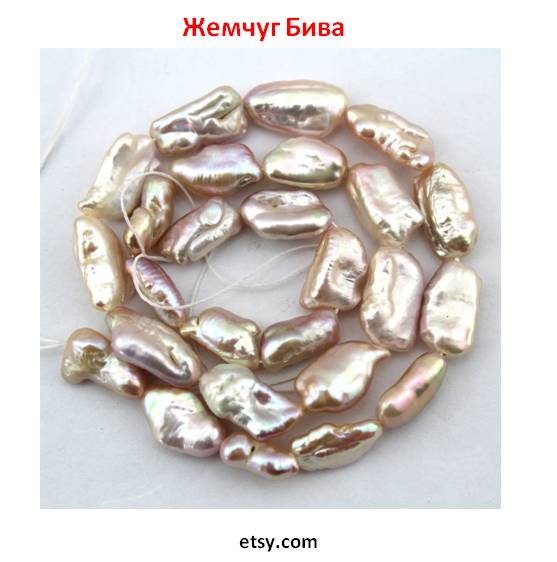 #Бива – пресноводный жемчуг родом из Японии. Завоевал популярность не только как элемент ювелирных украшений, но и компонент декоративных деталей. Богатейшая палитра окрасок (помимо традиционного жемчужно-белого это и розовый, и синий, и зелёный), необычная продолговатая форма – визитные карточки этого вида жемчуга. Жемчуг Бива начал культивироваться в начале 20 века на озере Бива, производится он устрицами. Особенность этого вида жемчуга – отсутствие затравки внутри жемчужины, ведь #жемчугБива получается в том случае, когда моллюск отторгает попавшую внутрь затравку.