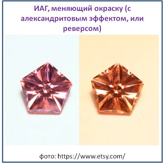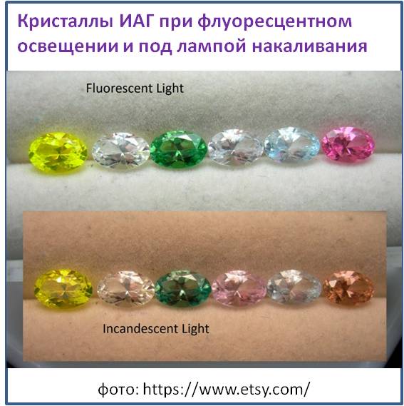 Список можно было бы продолжать, поскольку веществ со структурой граната синтезировано достаточно. Однако, в качестве огранённых «камней» встречаются ИАГ и ГГГ. Поэтому остановимся на них.