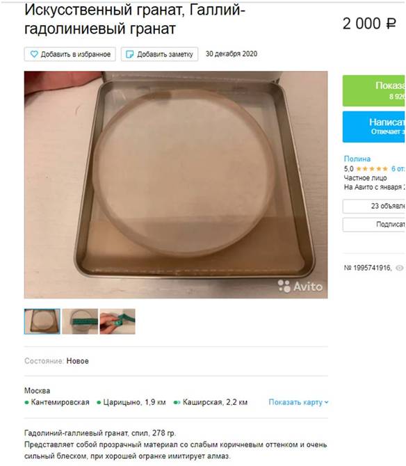 Меж тем, на Авито можно встретить объявления по продаже редкоземельных гранатов с предложением огранить их под алмазы.
