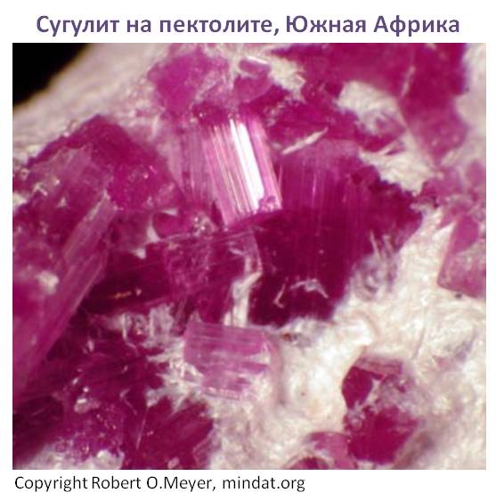 Некоторые образцы сугилита обладают александритовым эффектом, то есть, меняют окраску в зависимости от освещения; днём #камень будет голубовато-фиолетовым, а в вечернее время нальётся пурпурно-красным цветом.