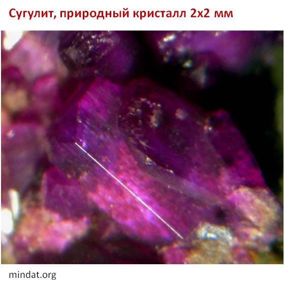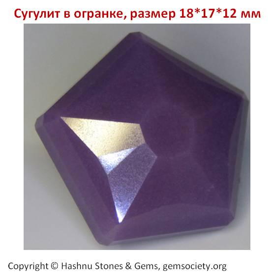 Поскольку сугилит чаще встречается в виде мелких кристаллов и их агрегатов, из него изготавливают кабошоны.