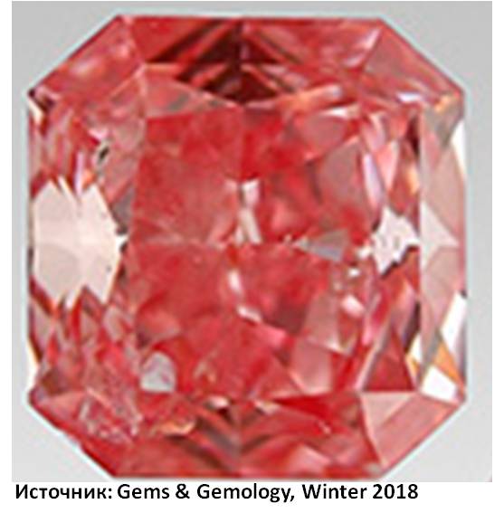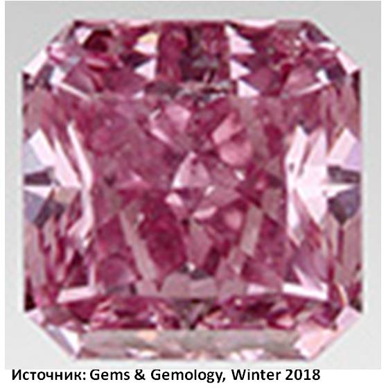 Причины розовой окраски тоже кроются в неидеальности структуры минерала, в нём присутствуют ламели, тончайшие следы деформаций, в результате оптических эффектов на границах которых возникают фантазийные розовые, бордовые, пурпурные окраски. Ещё одна возможность возникновения такой окраски – присутствие азотных ваканский. Фото с розовыми бриллиантами представлено из статьи(Sally Eaton-Magaña, Troy Ardon, Karen V. Smit, Christopher M. Breeding, and James E. Shigley Natural-Color Pink, Purple, Red, and Brown Diamonds: Band of Many Colors // Gems & Gemology, Winter 2018, Vol. 54, No. 4). Розовые алмазы известны на месторождениях Южной Африки, Бразилии, Индии, Австралии, России.